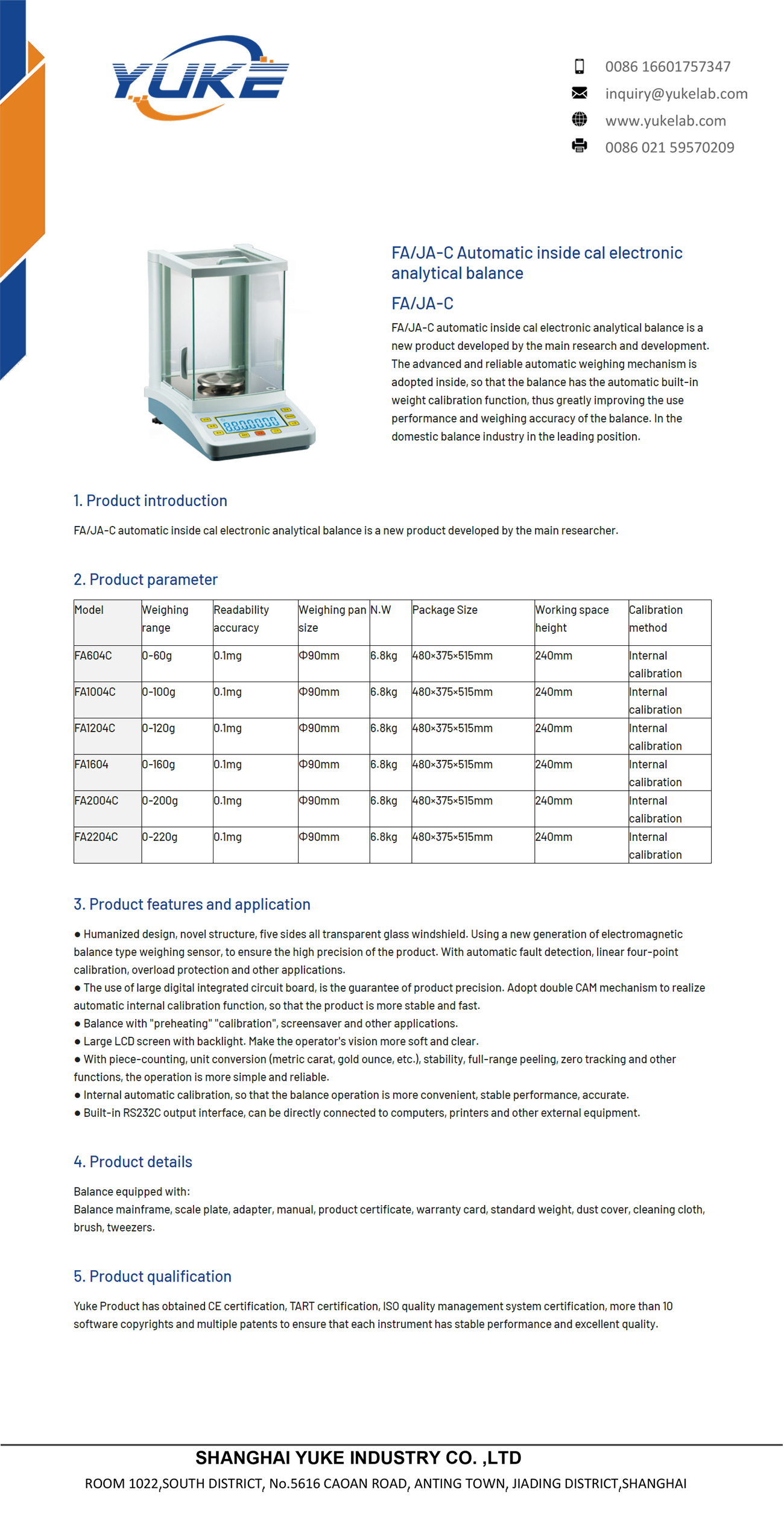 FA/JA-C automatic inside cal electronic analytical balance is a new product developed by the main researcher.